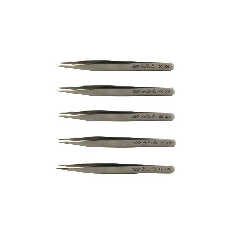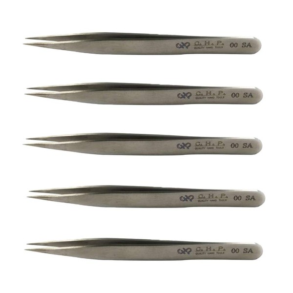 Hakko CHP 00-SA Fine-Tip Tweezers, Straight, Flat Tips, Non-Magnetic Stainless Steel, Corrosion-Resistant, Smooth Grip, 4-1/2" Length (5 Pack)