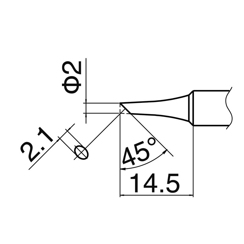Hakko T18-C2 - T18 Series Soldering Tip for Hakko FX-888/FX-8801 - Bevel - 2 mm/45? x 14.5 mm