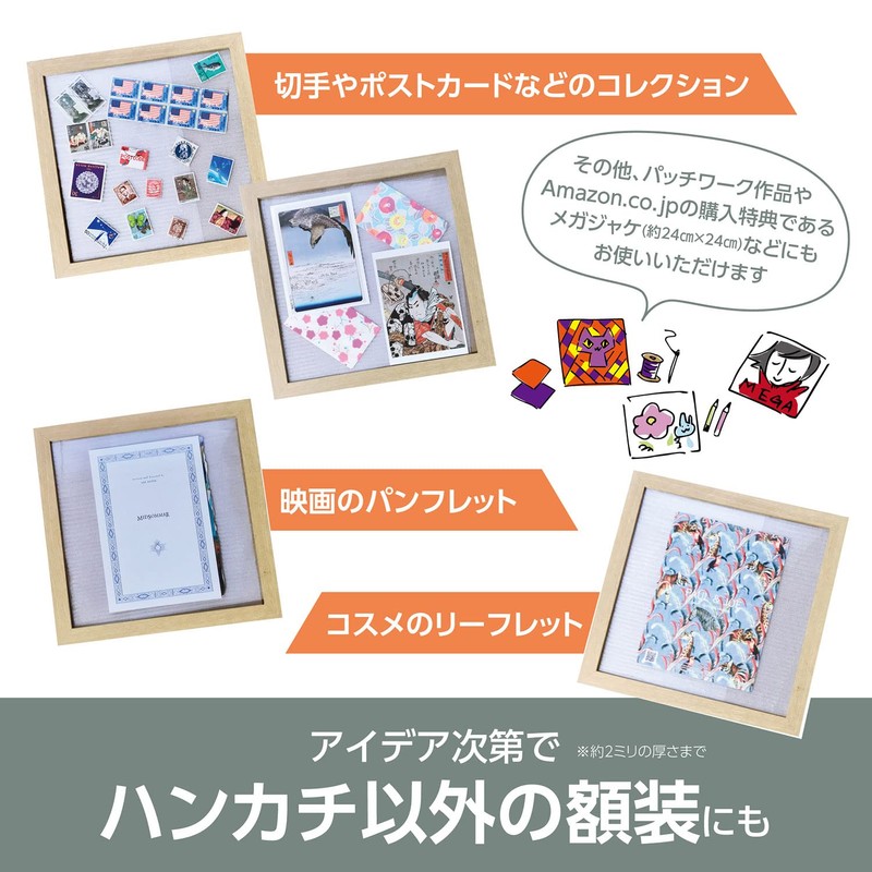 - This simple design frame allows you to frame your favorite handkerchief (approx. 9.8 x 9.8 inches (250 x 250 mm). Can be framed with a handkerchief of about 0.08 inch (2 mm) thick