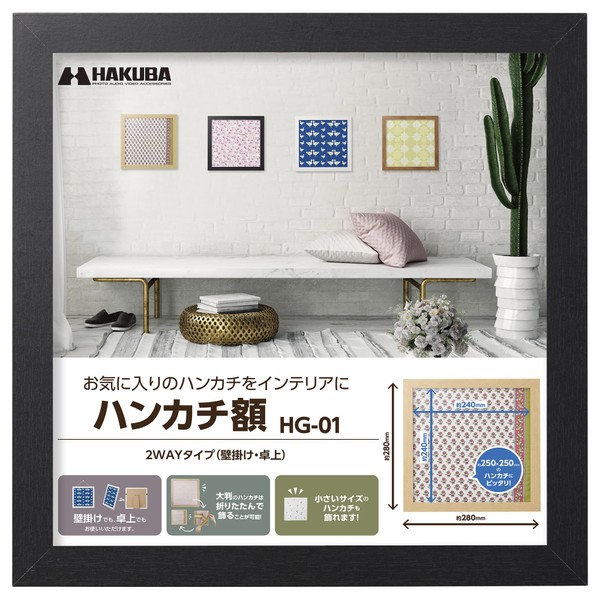 Hakuba HAKUBA Frame HG-01 Black AMZFWHG-01BK 9.8 inches (250 mm) Square Frame That Can Display Handkerchiefs and Jackets with Unbreakable PS Board Stand, Hanging String Included