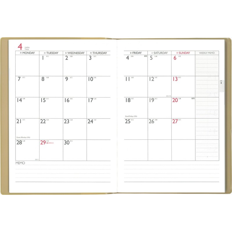 Hakubunkan 2025 A5 Weekly Desk Planner with Spin, Gold No. 177 (Begins January 2025)