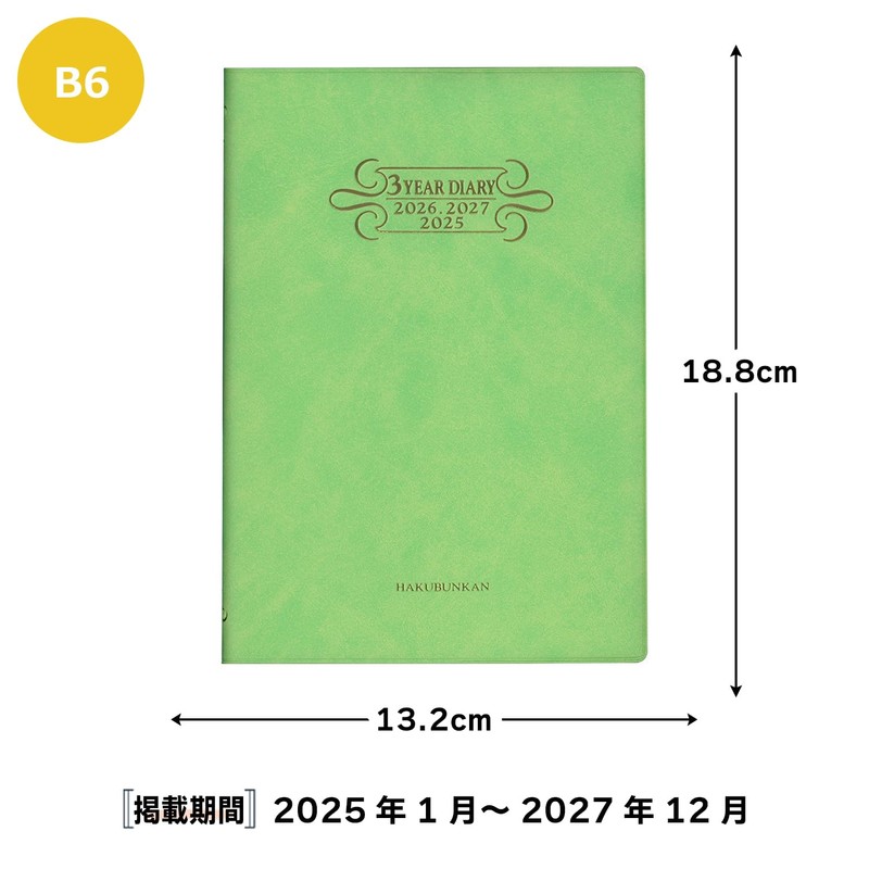 Hakubunkan Diary, 2025 B6, 3 Year Consecutive Diary, Soft, H-Form, Lime No. 173 (Begins January 2025)