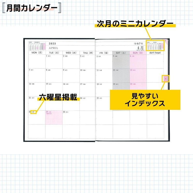 Hakubunkan No. 4137 Notebook, Begins in April 2025, B5, Monthly Desk Block, 12 Months, Black