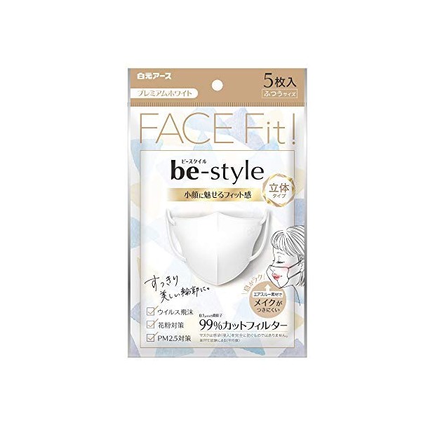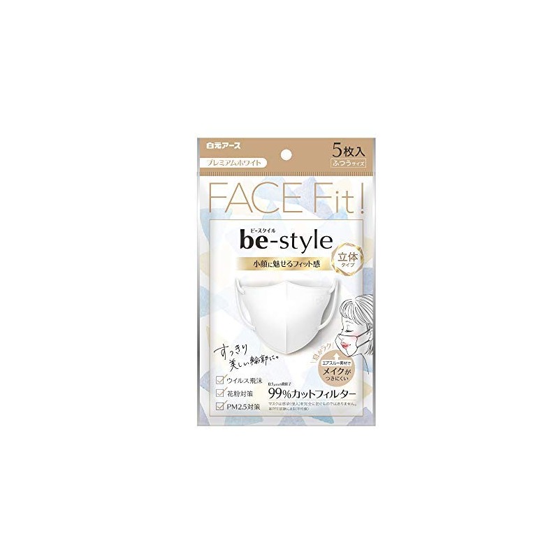 Hakugen Earth Be Style 3D Mask, Regular Size, Premium White, 5 Pieces