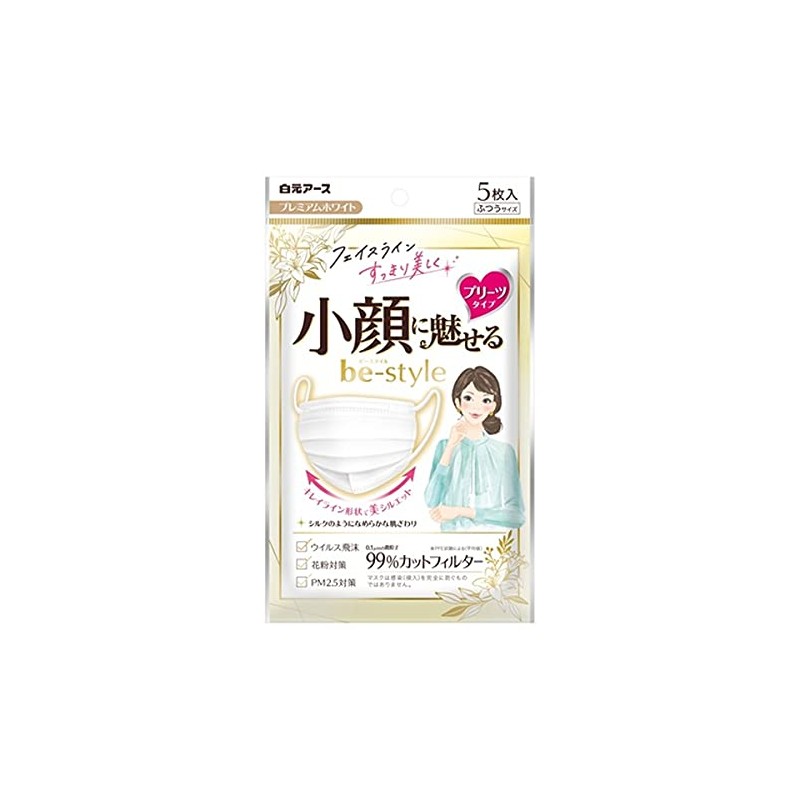 Hakugen Earth Be Style Pleated Type, Premium White, Regular, 5 Pieces