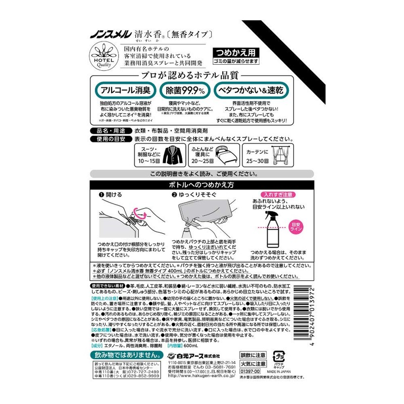 Hakugen Earth Non-Melt Shimizu Incense Unscented Refill Pouch, 20.3 fl oz (600 ml)