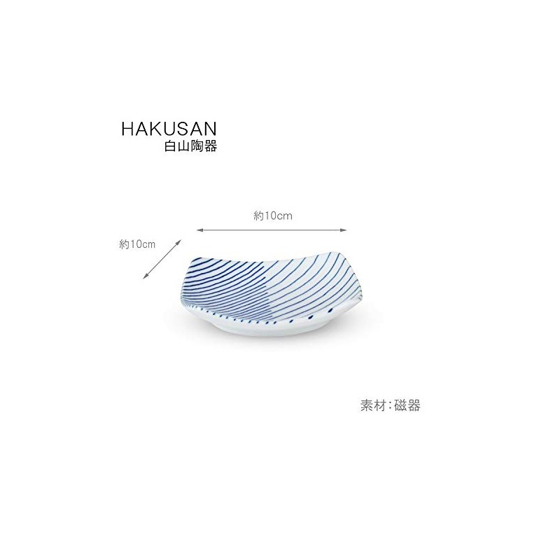 Hakusan Toki Counter Square Small Plate, Blue, Approx. 3.9 x 3.9 inches (10 x 10 cm), Layered Stripes, KASANEJIMA Hasami Ware, Made in Japan