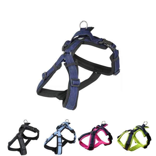 [白山:Hakusan] Zero Dog Harness Made by Japan, Safe - No chocking/Hard to Disconnect, Great fit - Easy Put on and Off/Adjustable, Reflector, Ventilation, XXS - Small & Medium Dog, Denim