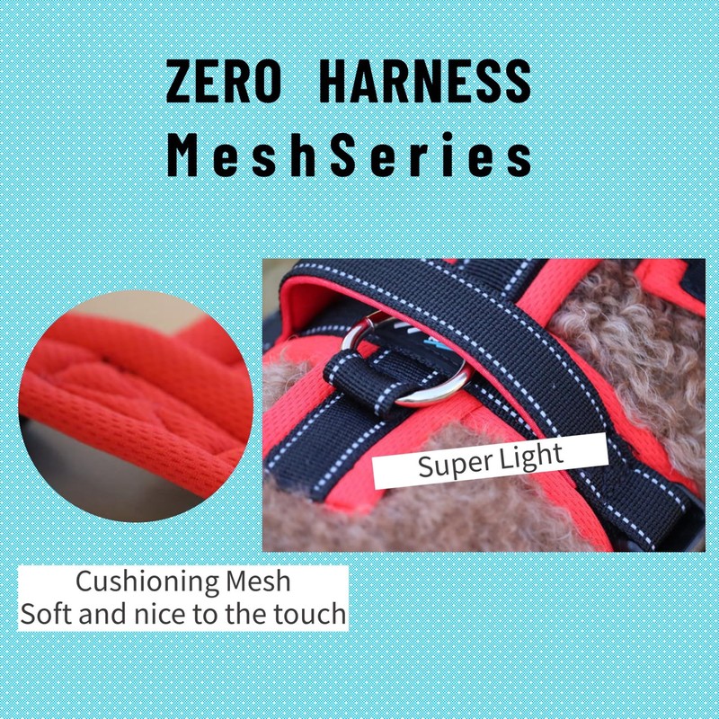Zero Harness is classified into the “Y-shaped harness”, that has the advantage of giving less pressure on the dog’s neck and trachea part. Adjustable on both neck and chest level, this "zero pressure" harness provides a perfect fitting experience for any breed and size.