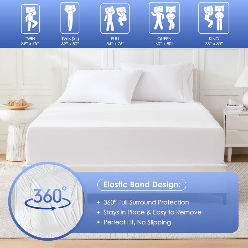 - 【Versatile Bedding Essential】 Designed for dorms, apartments, or luxury homes, this bed protector waterproof solution fits all mattress types—spring, latex, or hybrid. A must-have for hosting guests or safeguarding first-time home setups.