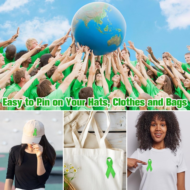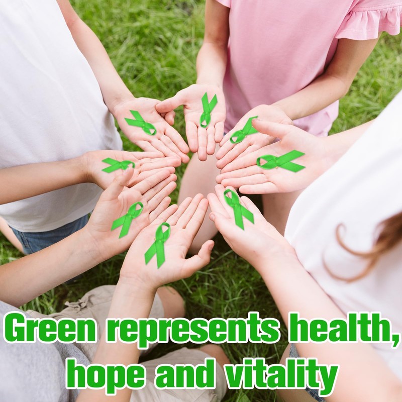 - Package Includes: The set contains 100 pcs green mental health awareness ribbon safety pins, the quantity is enough for your need, you can also share them with your family, friends, volunteers. It is a global symbol for transplant medical procedures, representing implant surgery, organ donation and organ transplantation