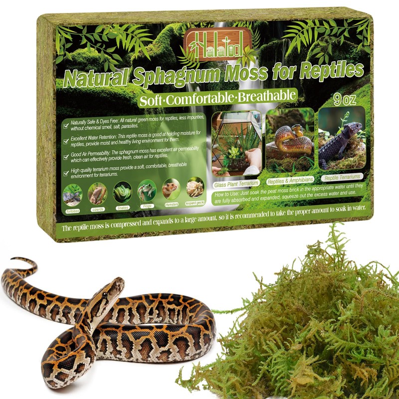 Halatool 9OZ Natural Sphagnum Moss for Reptiles Green Live Moss for Terrarium Plants Long Fiber Reptile Moss for Leopard Gecko Snake Hamsters Tortoises Frogs Lizards Salamanders