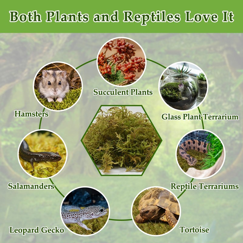 - Great Humidity Retention & Breathability: This terrarium moss is fluffy and absorbent, can provide a moist living environment for your reptiles. The moss also has an insulating effect, which will help the reptiles have a safe and cozy winter.