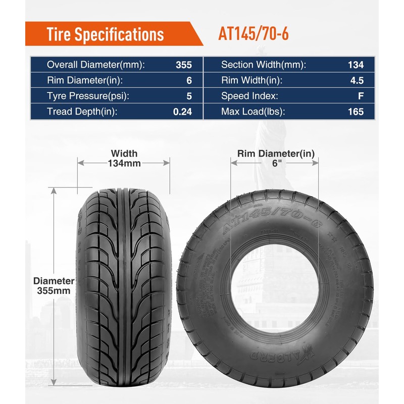 HALBERD 145/70-6 Go Kart Street Mini Bike ATV Tires, 4 PR 145 70-6 Off-road Tires, Tubeless, Pack of 2, P349