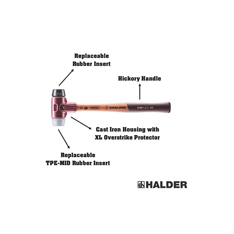 Halder 3023.030 Simplex .75 lb. Soft-Face Mallet with Black Rubber and TPE-Mid Grey Rubber Inserts, Cast Iron Housing, and Wood Handle