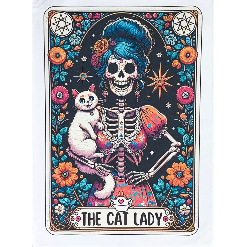 • The Cat Lady Tarot Card Large Cotton Tea Towel