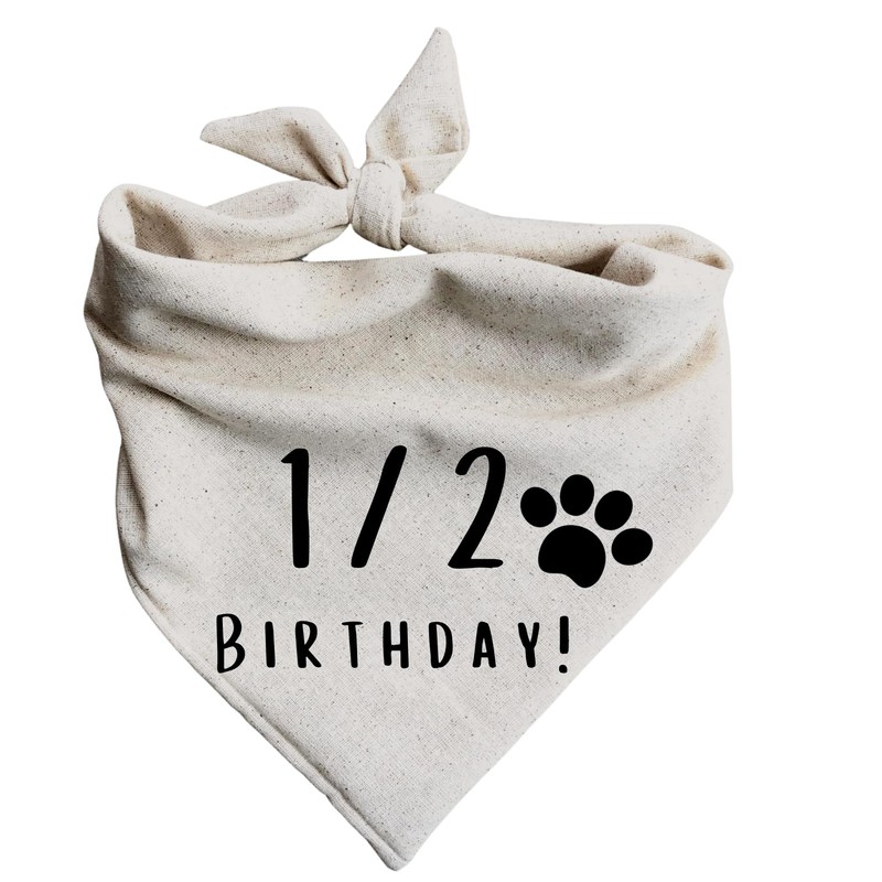 Half Birthday 1/2 Dog Bandana 6 Month Old Barkday Party Oatmeal Cream Natural Simple Minimal Neutral (Large)