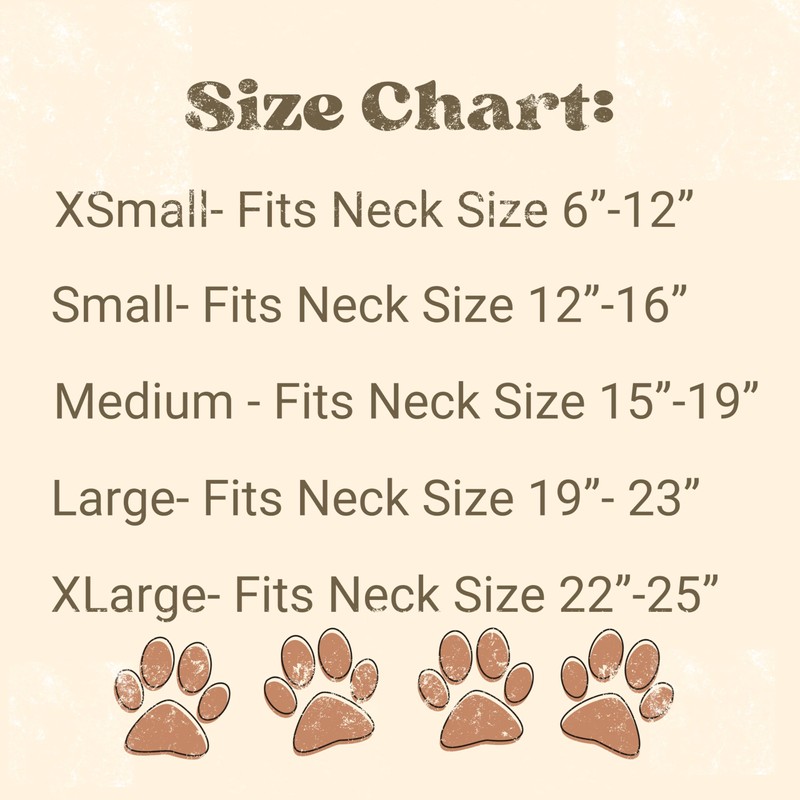 XS- neck size 8”-12” Ex. Chihuahua, mini doodles (also cat or rabbit)