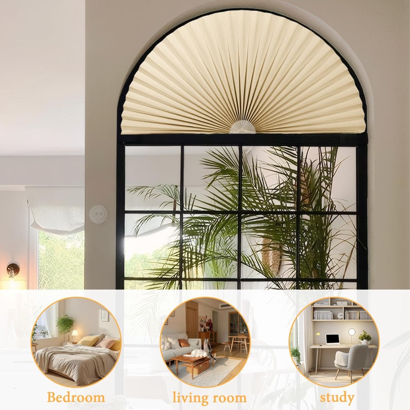 ✔Applicable scenarios: Bedroom/ living room/ bathroom, etc., half circle window shades is suitable for arched, half-moon and other special-shaped windows.