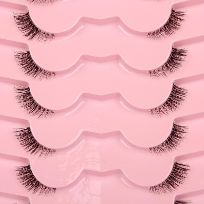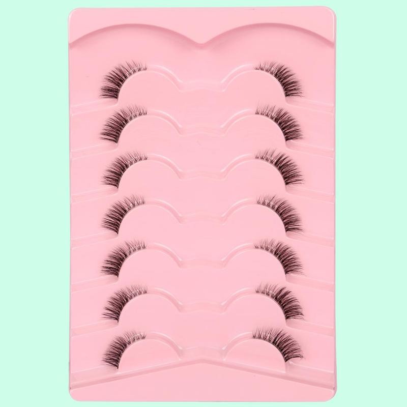 Half Eye False Eyelashes for Eyelash Extension, 7pairs/set Natural Curly Design 3D Transparent Stem Eyelashes for Makeup & Cosmetics