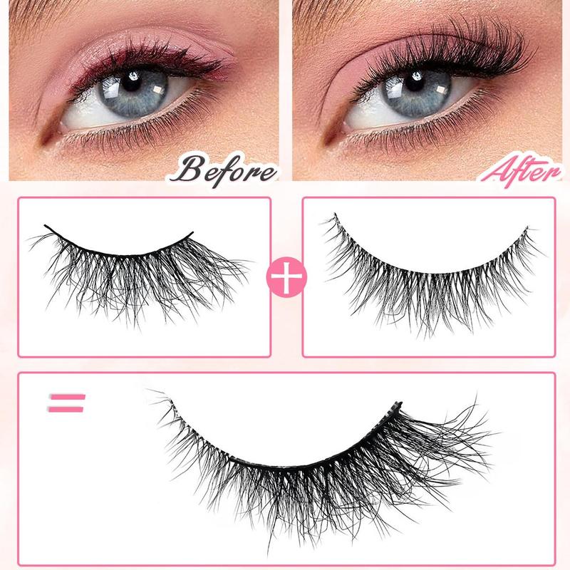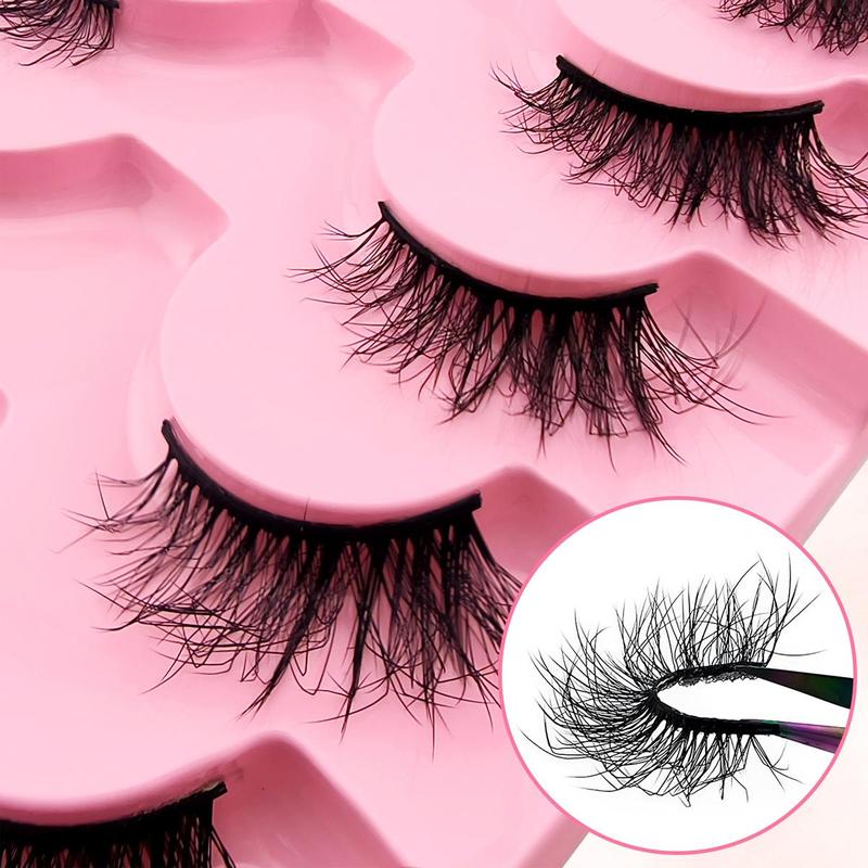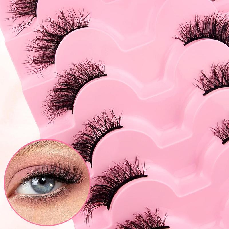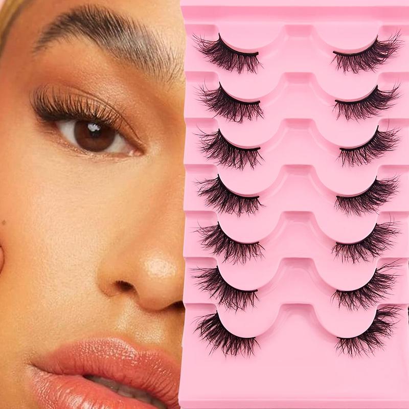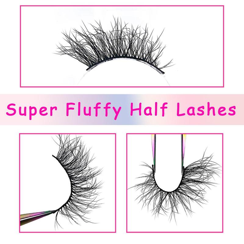 Half Eye Fluffy False Eyelashes, 7 Pairs Wispy Cat Eye Faux Cluster Lashes, Natural Curling Eye Makeup Strip Lashes for Women & Girls Eye Extensions