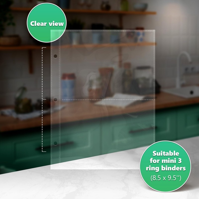 - 📄PREMIUM MATERIAL - Non-glare, Acid-free, Odor-free, Non-PVC, Archival-safe, Polypropylene index card page protectors perfectly suited for mini 3-ring half letter size recipe binders & organizers. Our 2 pocket sheet protector is made from environmentally safe recyclable polypropylene.