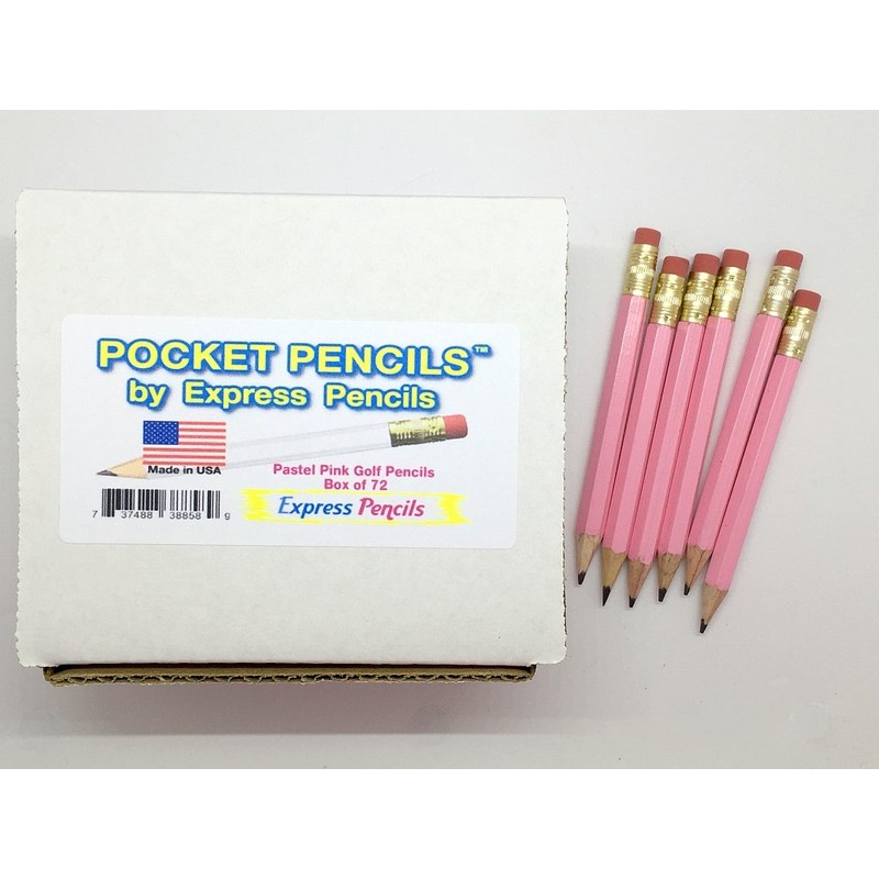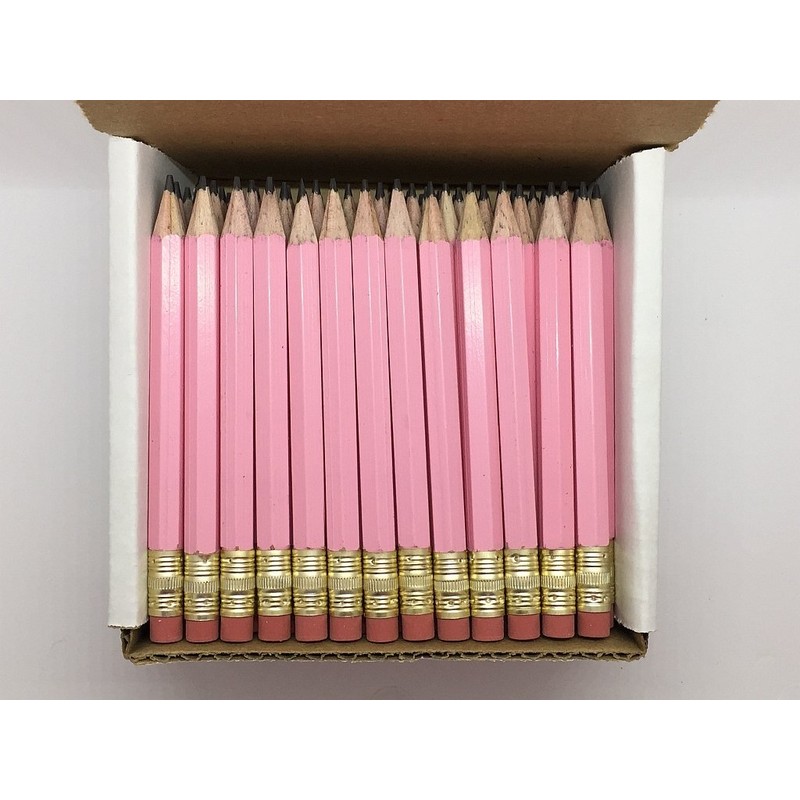 Half Pencils with Eraser - Golf, Classroom, Pew - Hexagon, Sharpened, 2 Pencil, Color - Pastel Pink, Box of 72 Golf Pocket Pencils TM