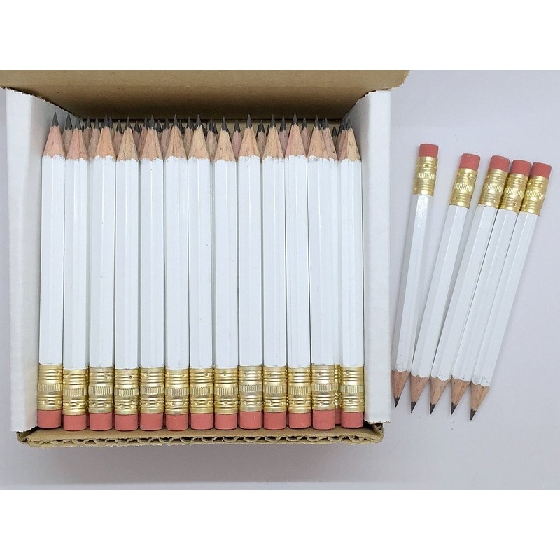 Half Pencils with Eraser - Golf, Classroom, Pew, Short, Mini, Non Toxic- Hexagon, Sharpened, 2 Pencil, Color - White, Box of 72, Pocket PencilsTM