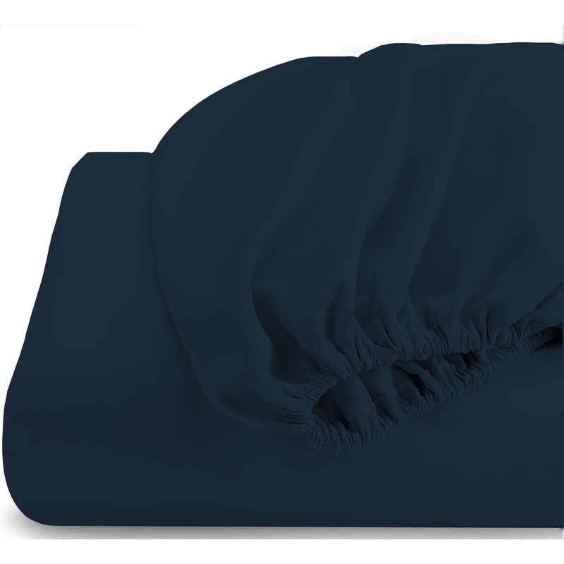 Half Split King Fitted Sheet for Adjustable Beds - 34 Inch Top Split, 600 Thread Count 100% Cotton, Navy Blue Solid