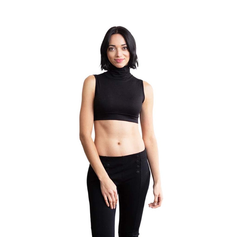 HALFTEE Turtleneck Sleeveless Layering Tee | Demi Cami Crop Tops for Women & Teens | Black | 1X
