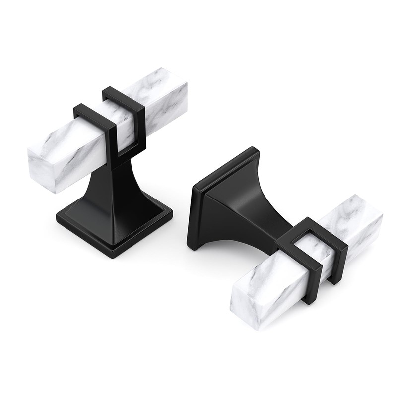 Haliwu 10 Pack/White Marble Cabinet Knobs, 2 Tone T-bar Knobs Marble Grain and Black Knobs,Kitchen Cabinet Knobs, Solid Square Dresser and Drawer Knobs