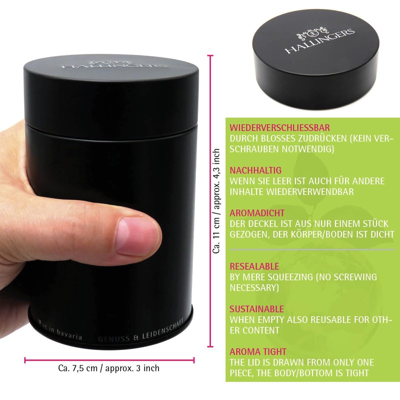 - In the aroma-tight, resealable premium tin, which can also be wonderfully reused when the tea is empty - environmentally friendly and sustainable
