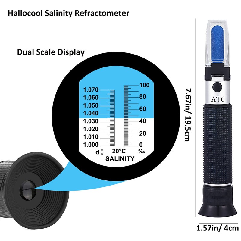 - ATC FUNCTION - Saltwater refractometer with automatic temperature compensation (ATC) function, allow you to obtain the accurate result faster and easier