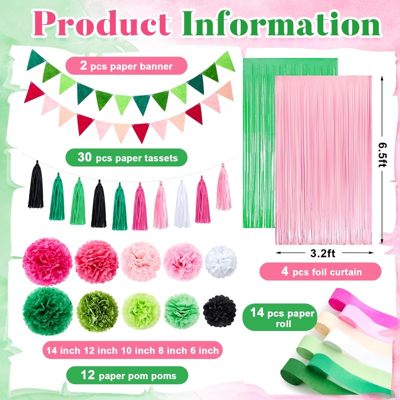 - Pink and Green Color Combination for Any Celebration: bring an elegant flair to any gathering with our beautiful pink and green decorations; Ideal for birthdays, showers, or any festivity, this set effortlessly elevates the ambiance, appealing to both kids and adults; The harmonious blend of pink and green adds a sophisticated touch, ensuring your party stands out