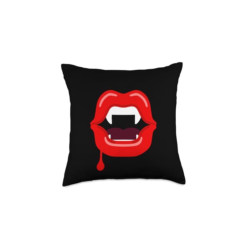 Halloween Bloody Vampire red Mouth Lips with Fangs Long Pointed Teeth Throw Pillow, 18x18, Multicolor