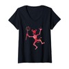 Halloween Dancing Devil Demon Creature Pitchfork Graphic V-Neck T-Shirt