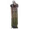 • Scary appearance: It is dressed in a fabric costume adorned with black bloodstained gauze and green shading, featuring a skull with glowing eyes, and internal lights to complete the overall look. It is suitable for scaring trick-or-treaters.