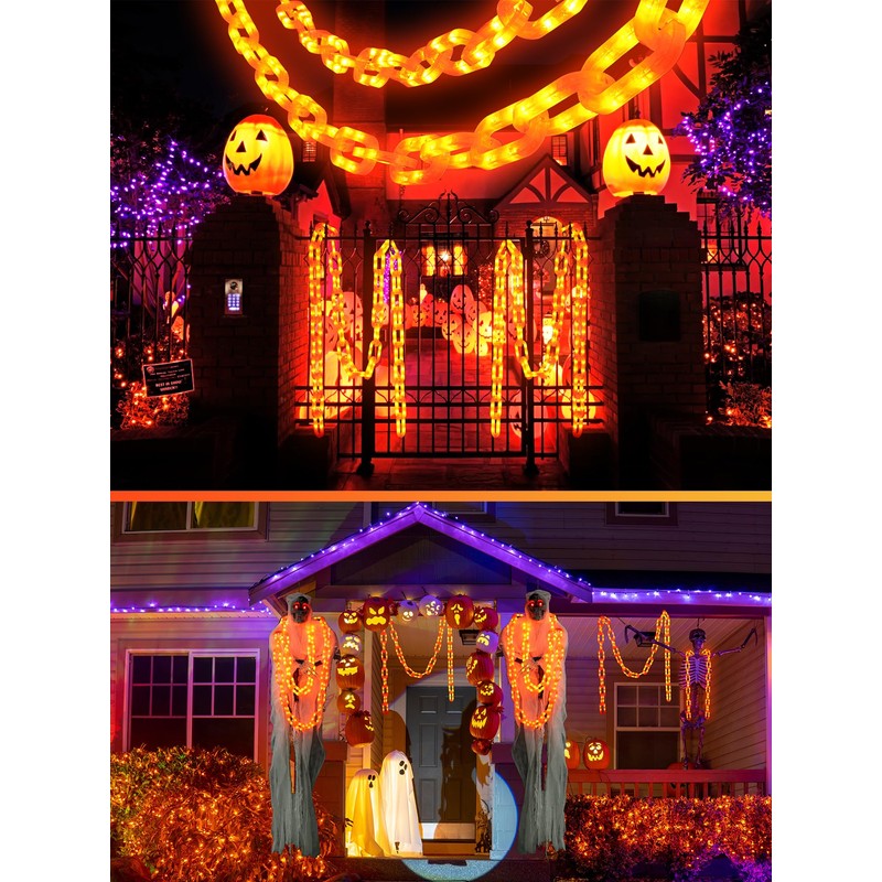 - Unique chain light design - Add some spooky fun to your Halloween with this unique chain light design. The orange shell and light will make your place look like a haunted house or a pumpkin patch.