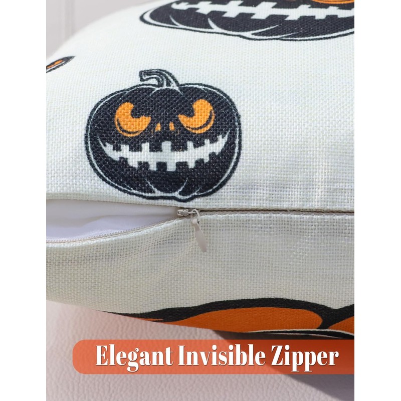 Halloween Decorations Double-Side Printing Pillow Covers 20'' x 20'' Set of 4, with 8 Cute Halloween Decor Patterns, Elegant Invisible Zipper, Durable Soft Linen Throw Pillow Covers Outdoor Indoor