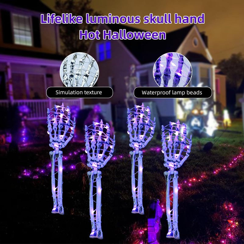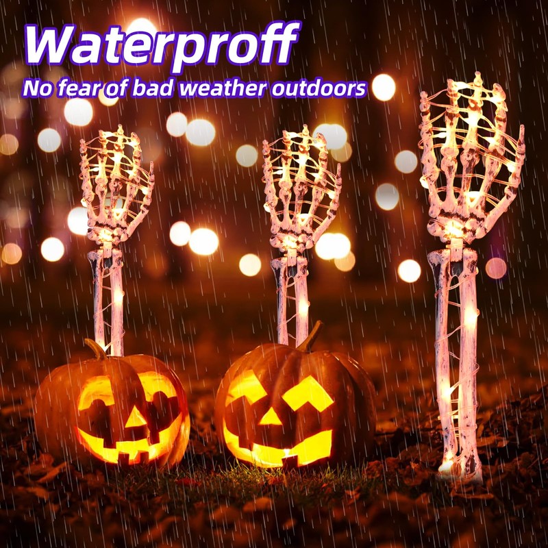 - Durable and Easy to Install: The skull arm decoration is made of high-quality plastic, sturdy and durable, able to withstand all kinds of harsh weather, ensuring it is suitable for indoor and outdoor Halloween decorations. The wrist is flexible and can be placed flexibly in any position you want. Installation is very simple, just insert the skeleton arm into the soft soil or ground and easily light up your Halloween night.
