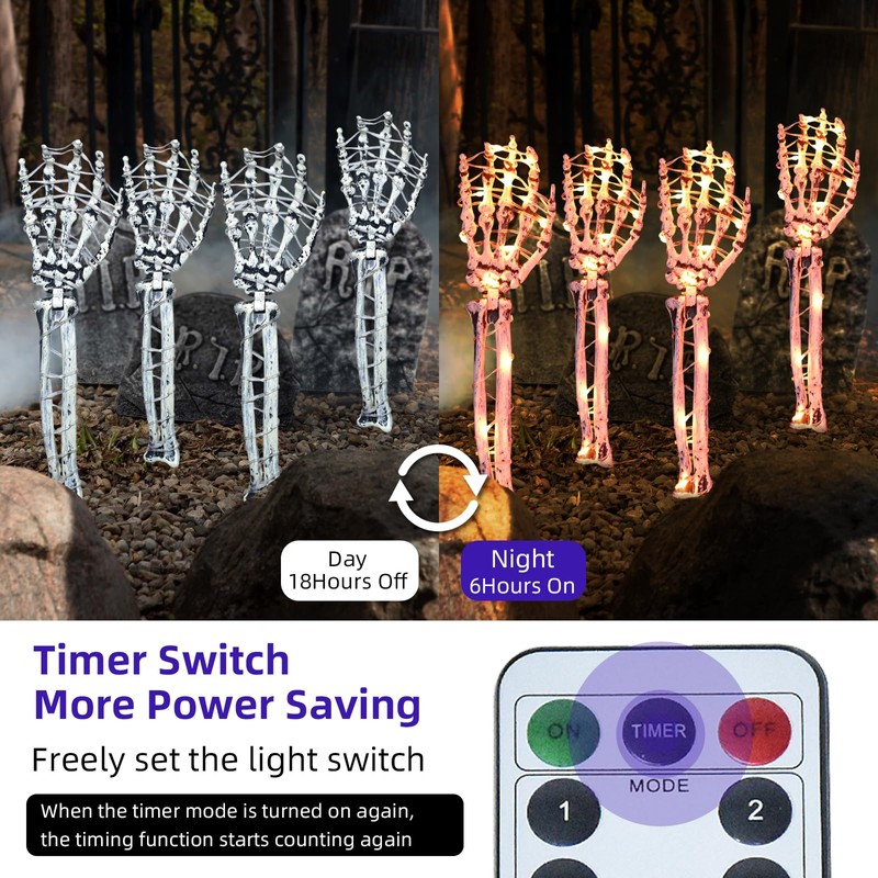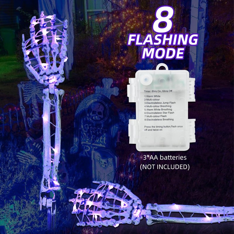 - 8 Lighting Modes and Timing Function: These Halloween yard decorations are equipped with 80 high-quality LED lights, providing 8 unique lighting modes, including color switching, combination, flashing gradient, etc. The timer function can achieve a cycle of 6 hours of on and 18 hours of off, so you don't need to operate frequently and save electricity at the same time. You can freely choose and modify the lighting mode to add more variety and fun to your Halloween garden light decoration.