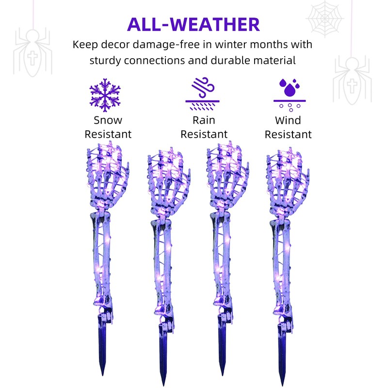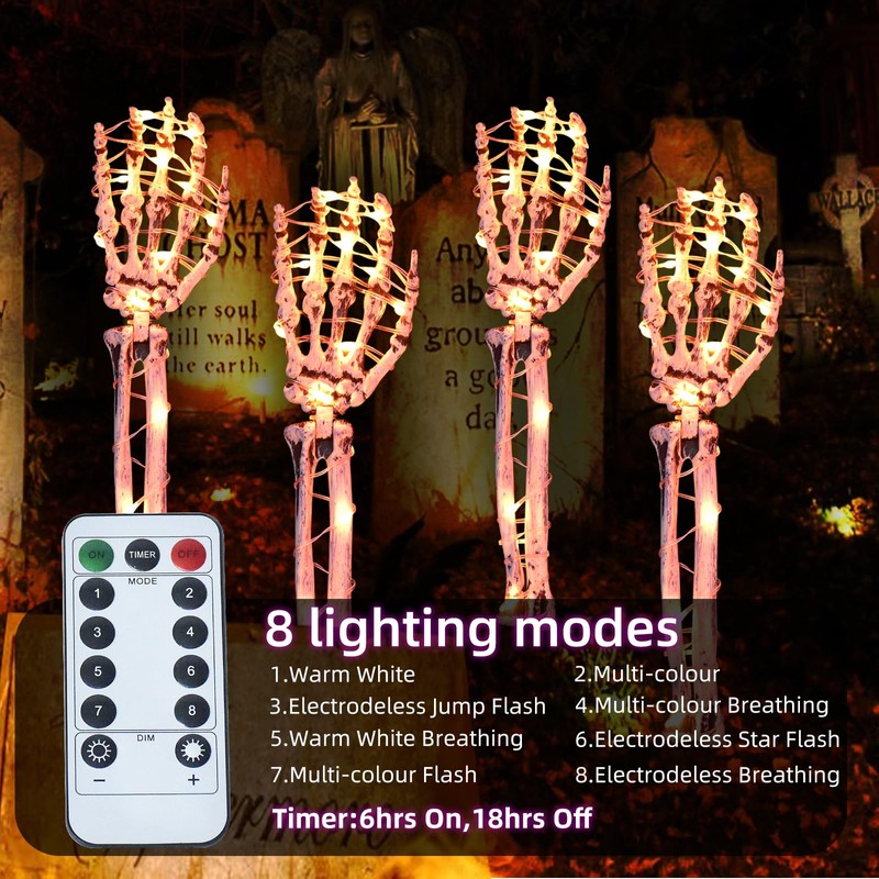 - Stun Your Neighbors And Visitors: This glowing 4 skeleton Halloween decor will add more fun and spooky elements to your outside Halloween decorations. Each arm measures 18.3 x 4 inches, making them perfect for placing on your patio, garden, curbside, or anywhere else to instantly make your outdoor Halloween decorations more attractive and memorable.