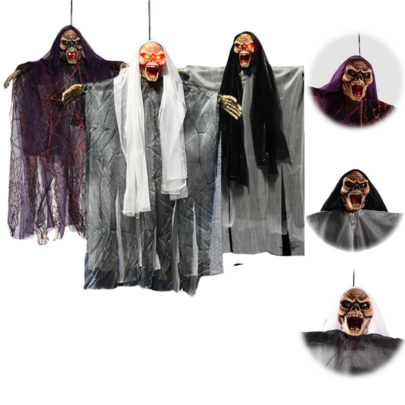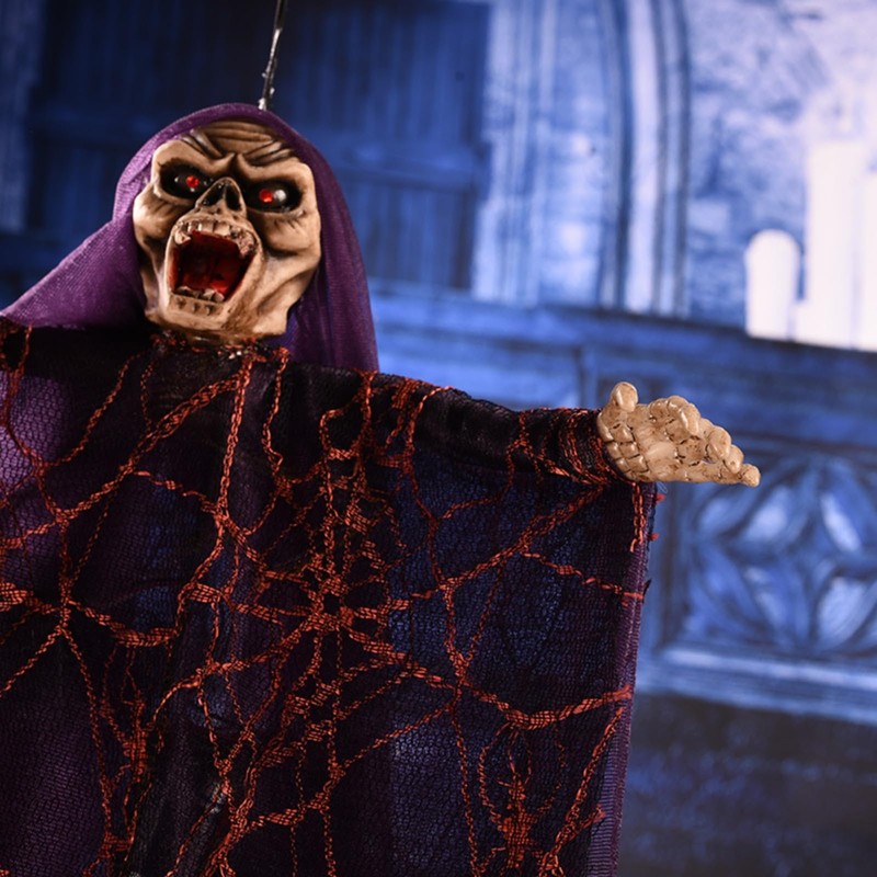 Halloween Hanging Witch, 20" Halloween Flying Ghosts with Red Eye LED Light,Voice Controlled or Touch Triggered Scream, for Haunted Haunted House Prop, Halloween Party Supplies Decor (Purple)
