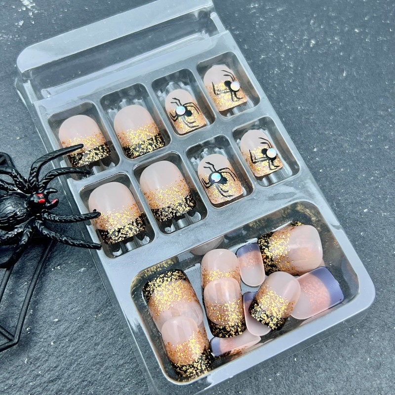 - Packaging includes:You will receive 24 halloween glitter french tip nails, 24 jelly glue, 1 small crystal stick, alcohol bag, nail file, no additional tools required