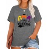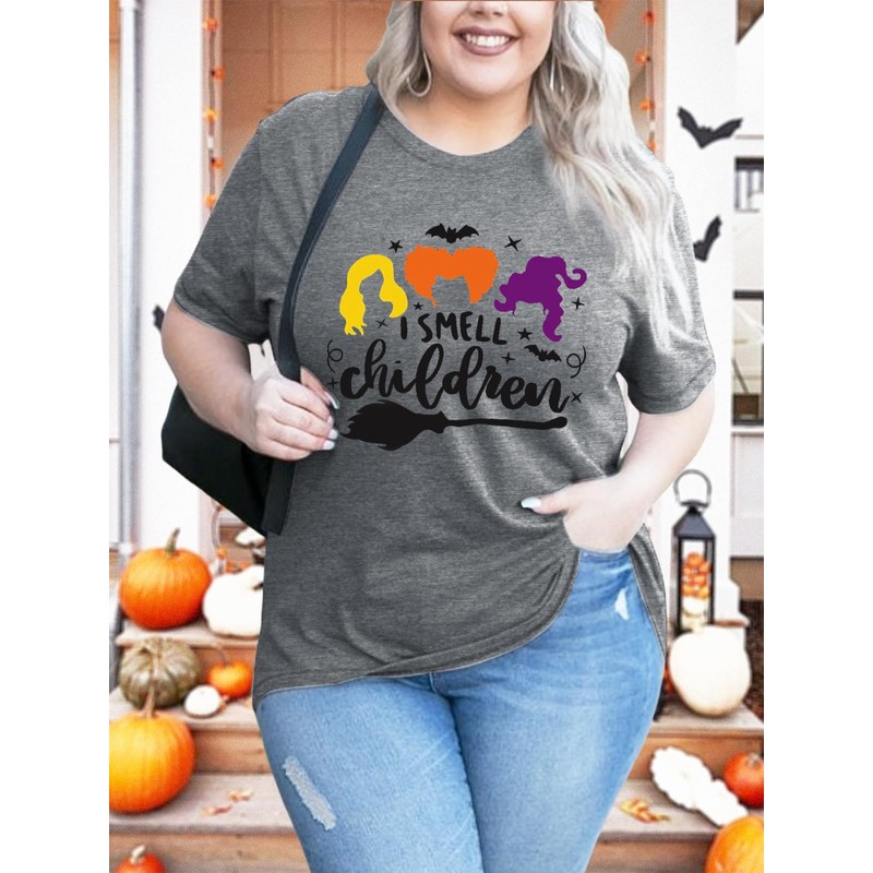 - 【FASHION FEATURES】Basic witch Halloween plus size T shirt, with unique printing process,funny graphic tees,Halloween witch short sleeve tops tees,the round neck design can modify the neck well,vintage graphic cute Halloween shirts,short sleeve,letters print,cover hip length.women's Halloween costumes.