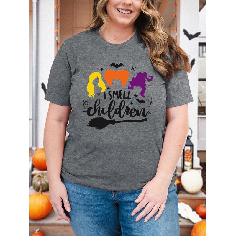 Halloween Shirt for Women Plus Size Funny Graphic Basic Witch Tops Casual T-Shirts Fall Hocus Pocus Shirts Tee
