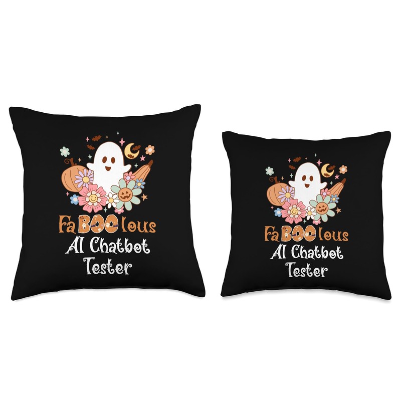 Halloween Simple Easy Costumes and Gifts Faboolous AI Chatbot Tester Boo Funny Halloween Throw Pillow, 18x18, Multicolor