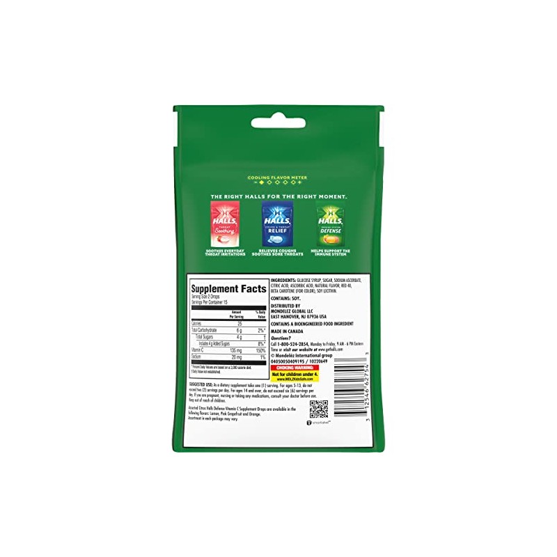 - One package of 30 HALLS Defense Assorted Citrus Vitamin C Drops