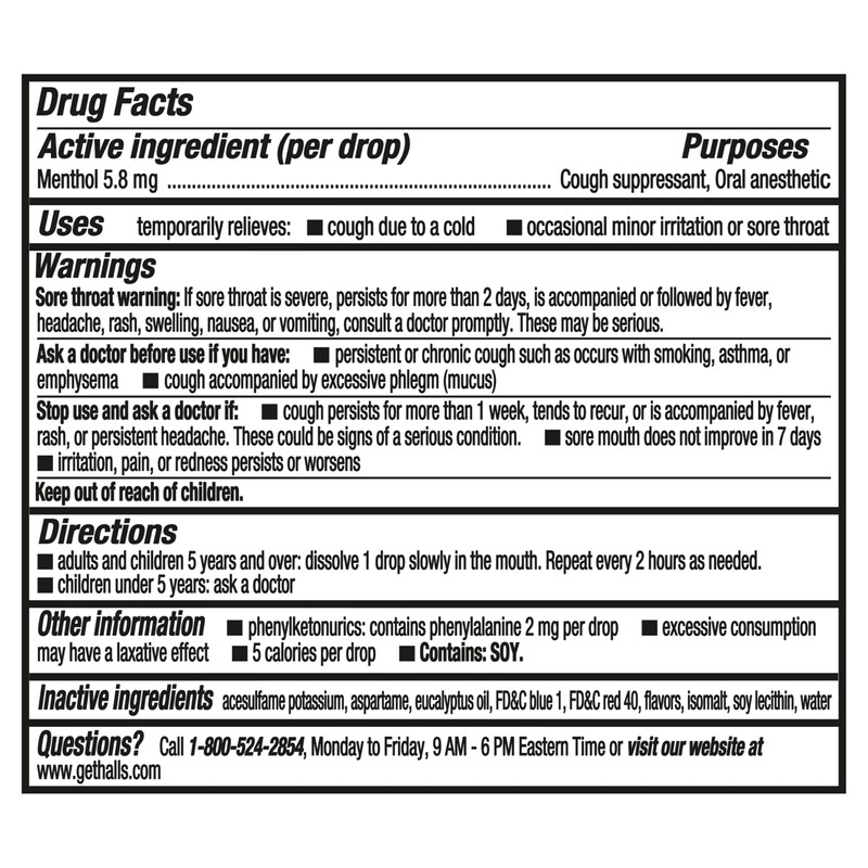 - Contains 5.8 mg of menthol per drop for maximum strength cough and cold relief