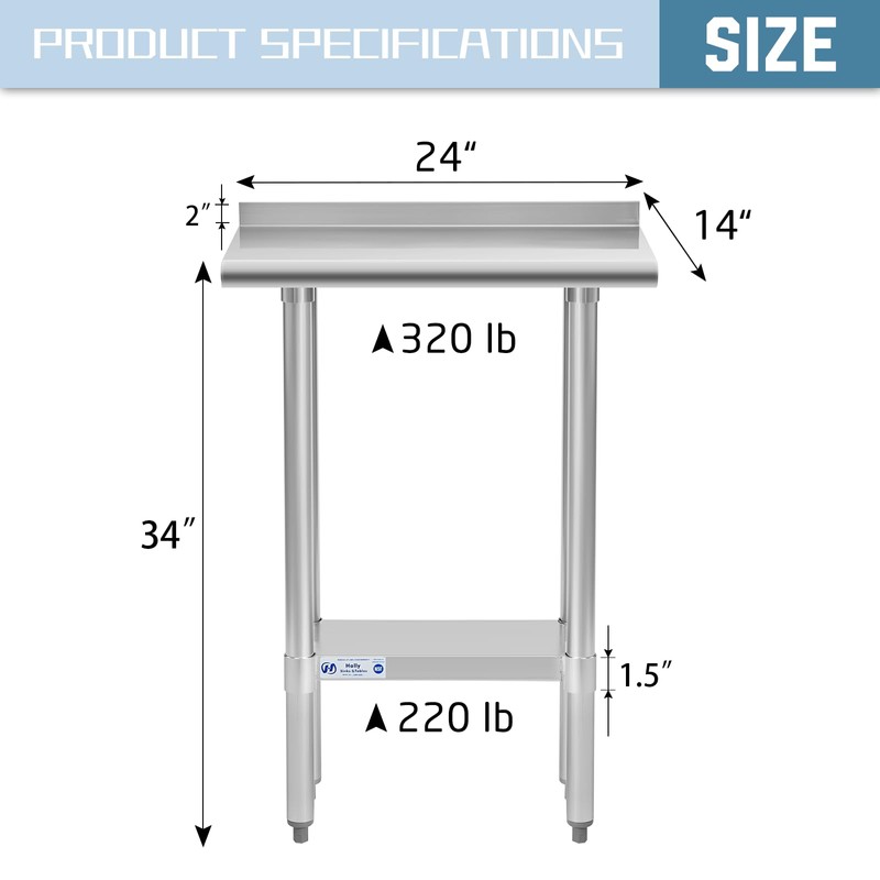 Hally Stainless Steel Table for Prep & Work 14 x 24 Inches, NSF Commercial Heavy Duty Table with Undershelf and Backsplash for Restaurant, Home and Hotel